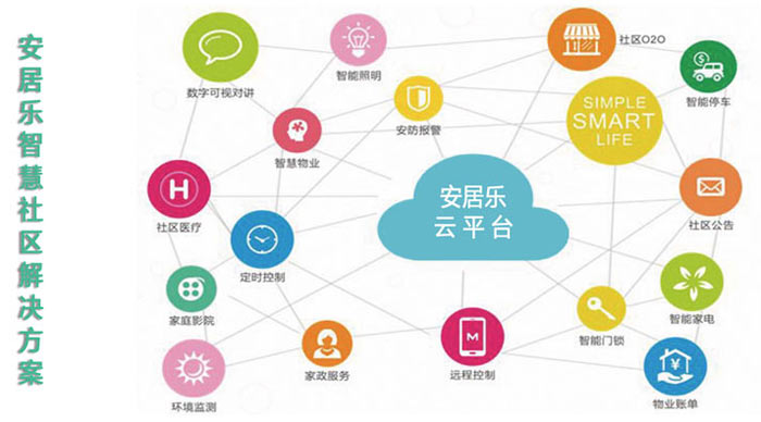 安居樂智慧社區,不帶鑰匙照樣開家門,開啟智慧生活新時代!以及社區O2O電商應用于一體的整體應用方案。旨在為地產商、物業公司提供可運營、可管理、智能化、移動化的智慧解決方案,開啟智慧生活新時代!內設多重智能系統,一個手機即可隨時掌握家庭、社區等動態,隨時隨地,與家零距離,為業主提供貼身、便捷、安全、舒適的社區生活空間。