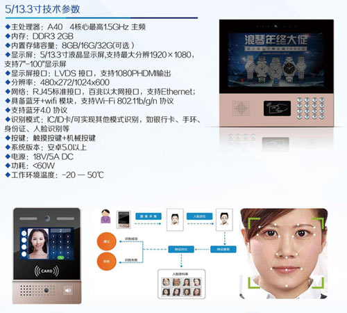 5/7/13.3寸人臉識(shí)別:極致的刷臉體驗(yàn),克服光照敏感,準(zhǔn)確率99.9%。