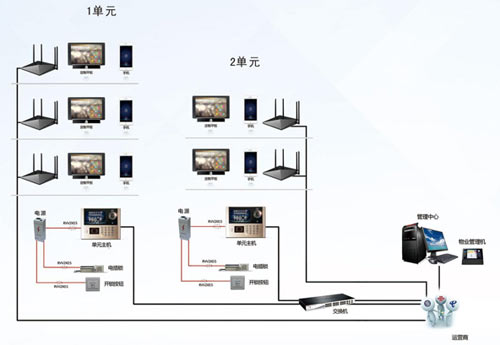 云對(duì)講局域網(wǎng)系統(tǒng)布線示意圖