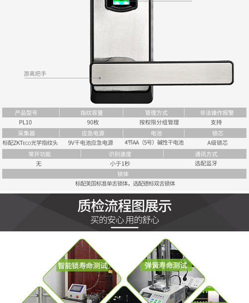 商品名稱:中控智慧(zkteco)PL10指紋鎖智能鎖電子機(jī)械鎖家用防盜門(mén)鎖