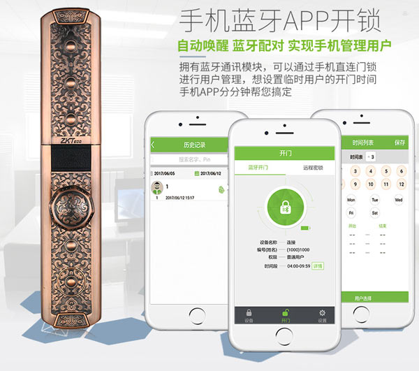 商品名稱:中控智慧(ZKTeco)CL100指紋鎖家用別墅防盜電子門鎖手機APP遠程遙控智能密碼鎖 (指紋+密碼+刷卡+鑰匙+手機APP)青古銅 標配